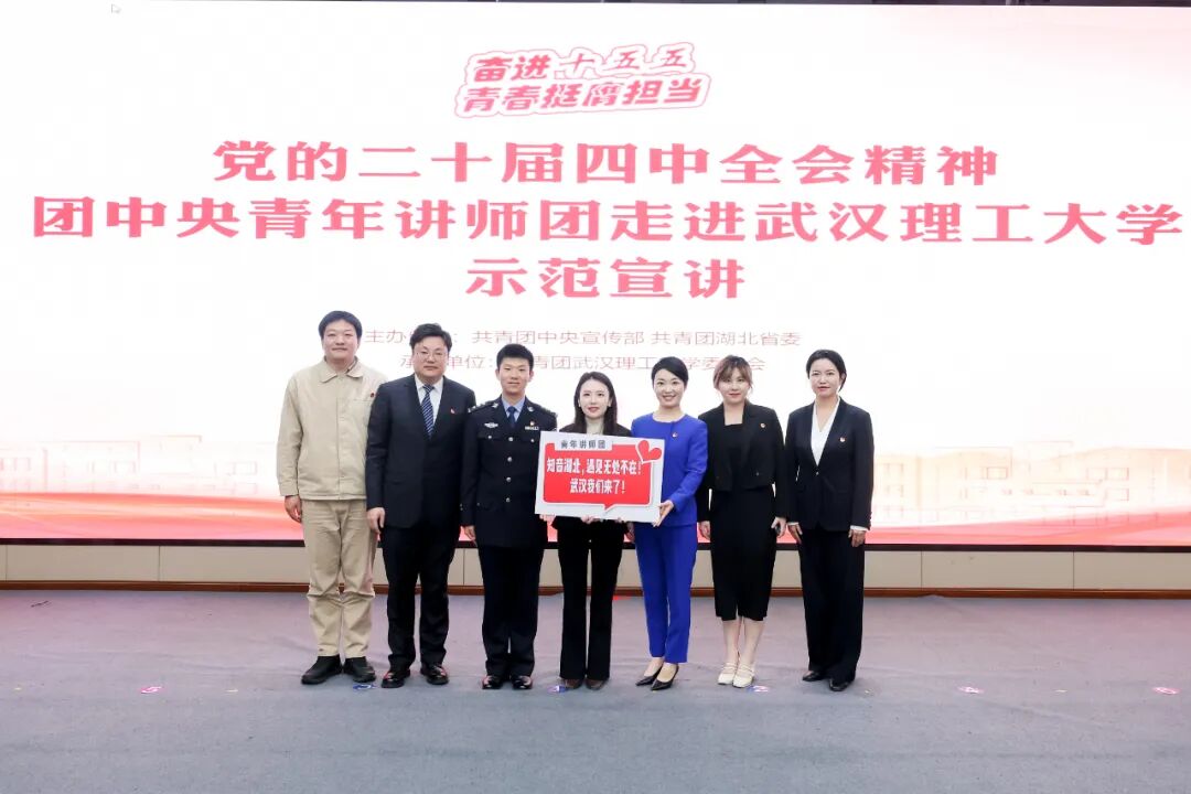 为深入学习宣传贯彻党的二十届四中全会精神,引导广大青少年把思想和行动统一到党中央决策部署上来,11月21日至22日,共青团中央青年讲师团走进湖北,在宜昌市、武汉理工大学举办党的二十届四中全会精神示范宣讲报告会。湖北省青年宣讲骨干代表、青年师生、公安干警、创业青年代表、新兴领域青年代表和“西部计划”志愿者等400余人现场聆听学习。